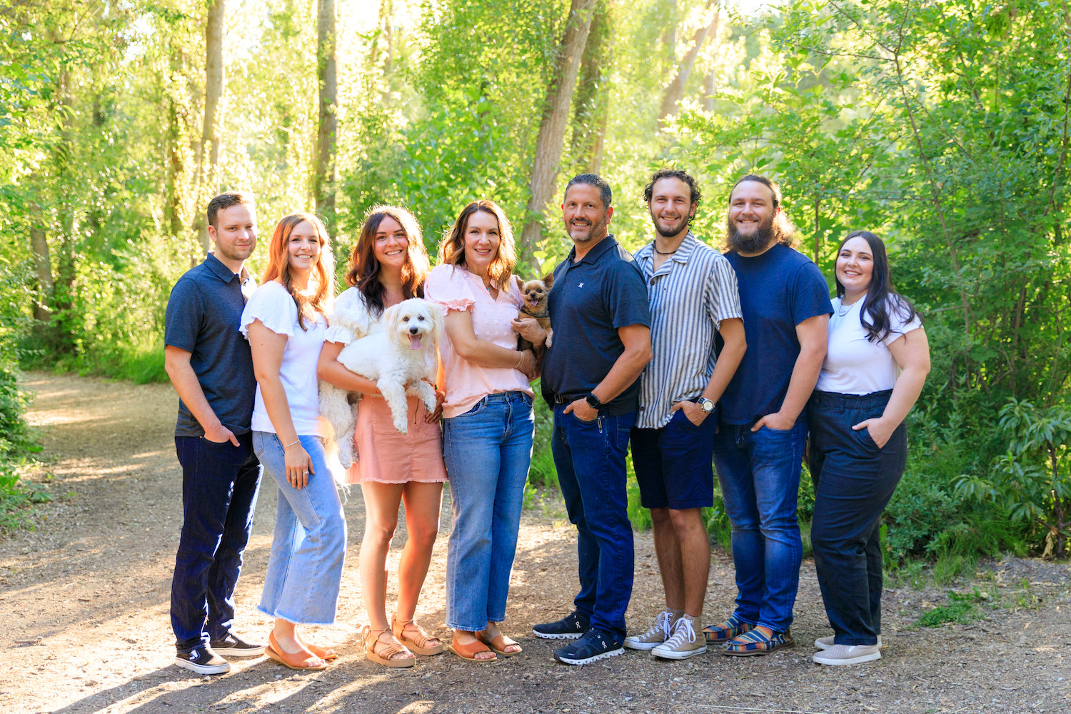 That's me there in the middle - surround by my husband, pups, two daughters, two sons and two of their significant others.