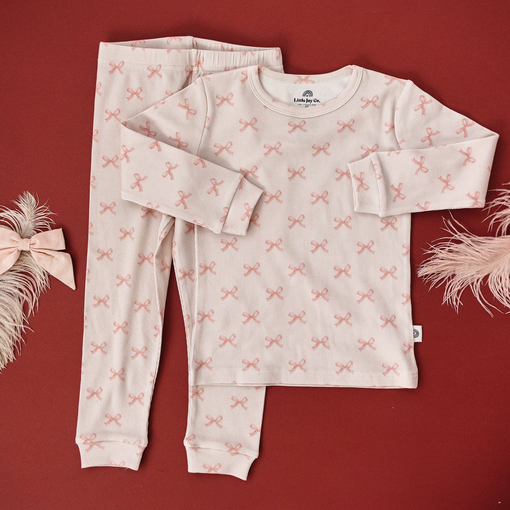 Blushing Bows 2pc Ribbed Bamboo Pajama Set