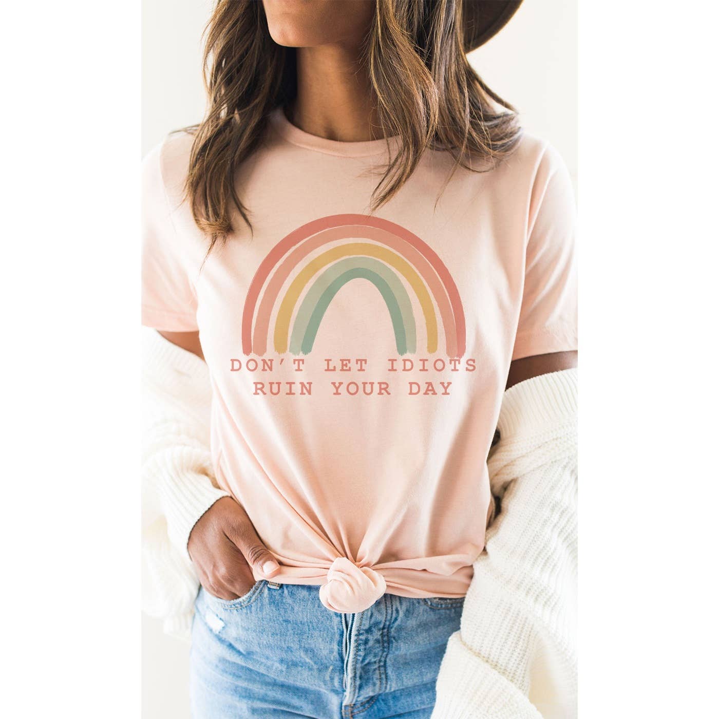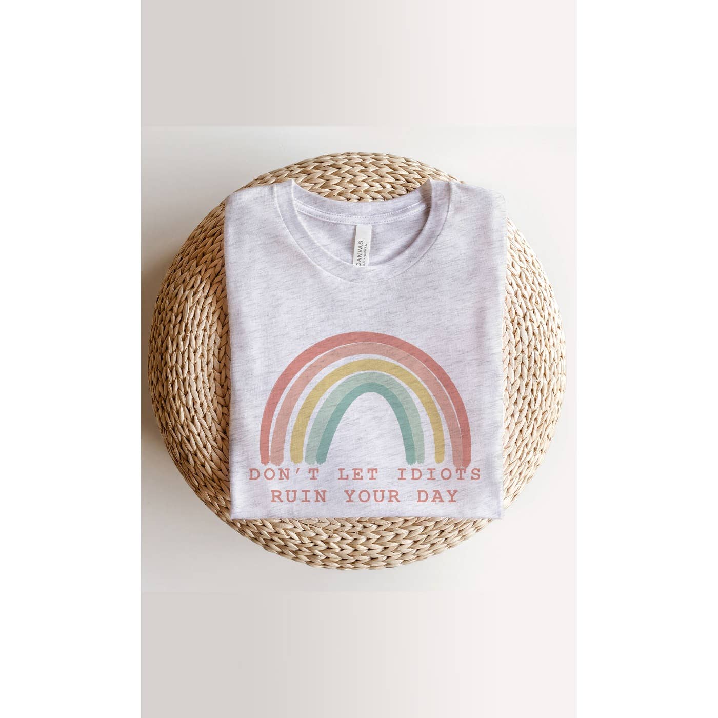 Don't Let Idiots Ruin Your Day Graphic Tee. T-shirt colors are 52/48 cotton/polyester blend.