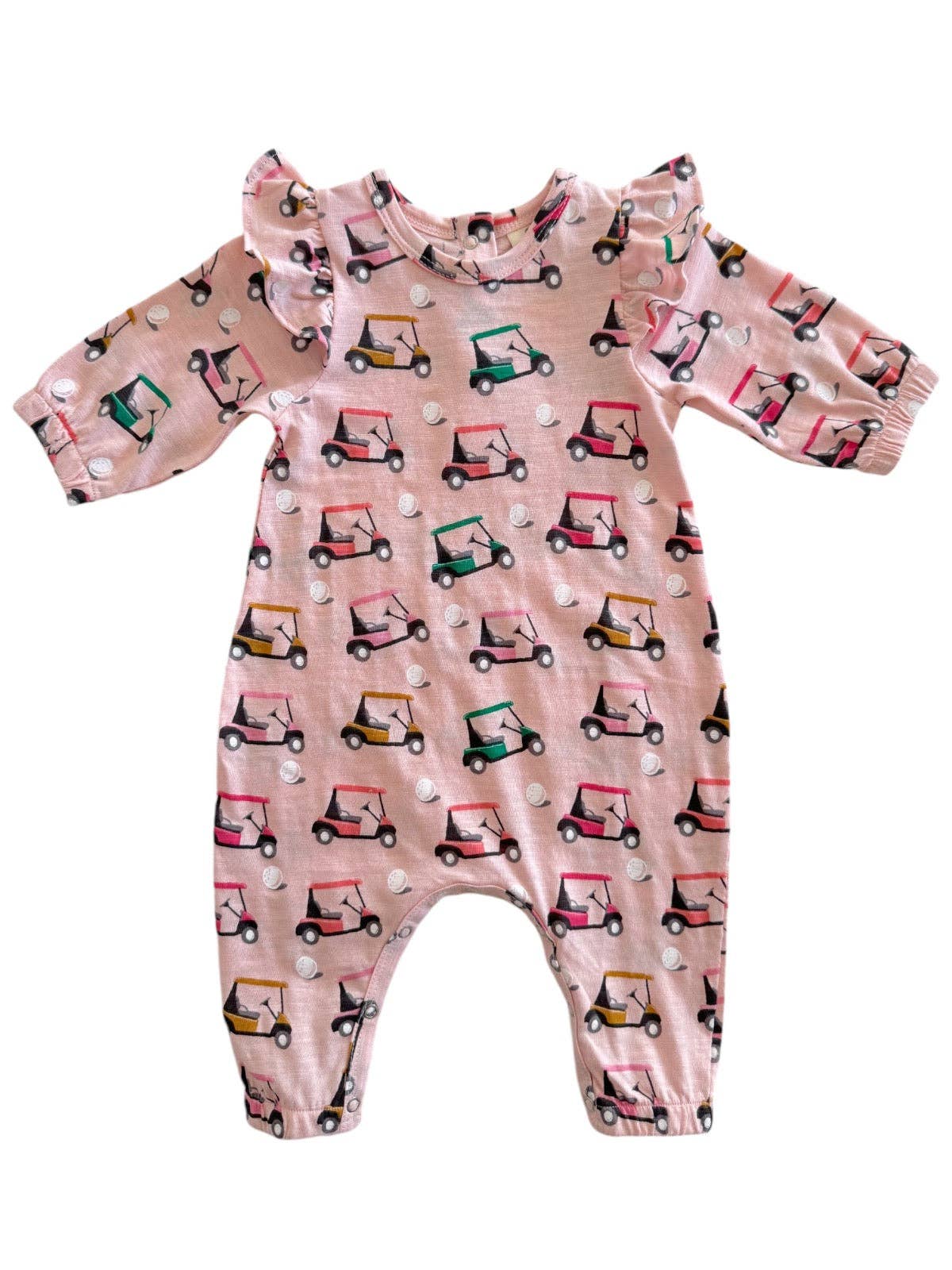 Golf Cart Pink / Organic Long Sleeve Ruffle Jumpsuit