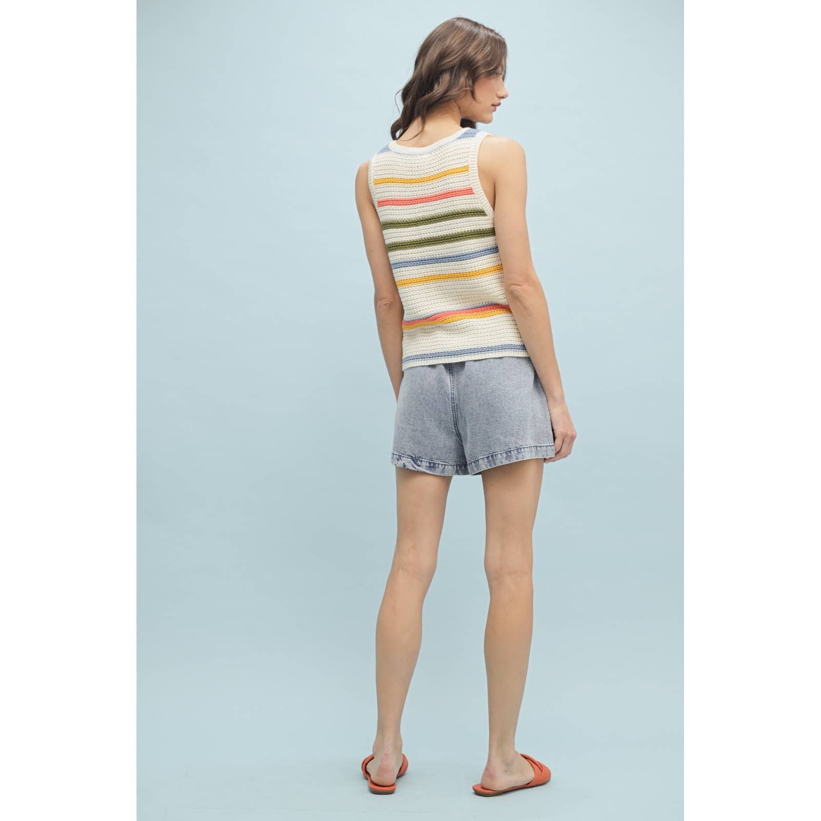 MULTI-COLOR STRIPED SWEATER TANK - SLEEVELESS, V-NECK, CASUAL, EVERYDAY, RELAXED, KNIT 100% ACRYLIC