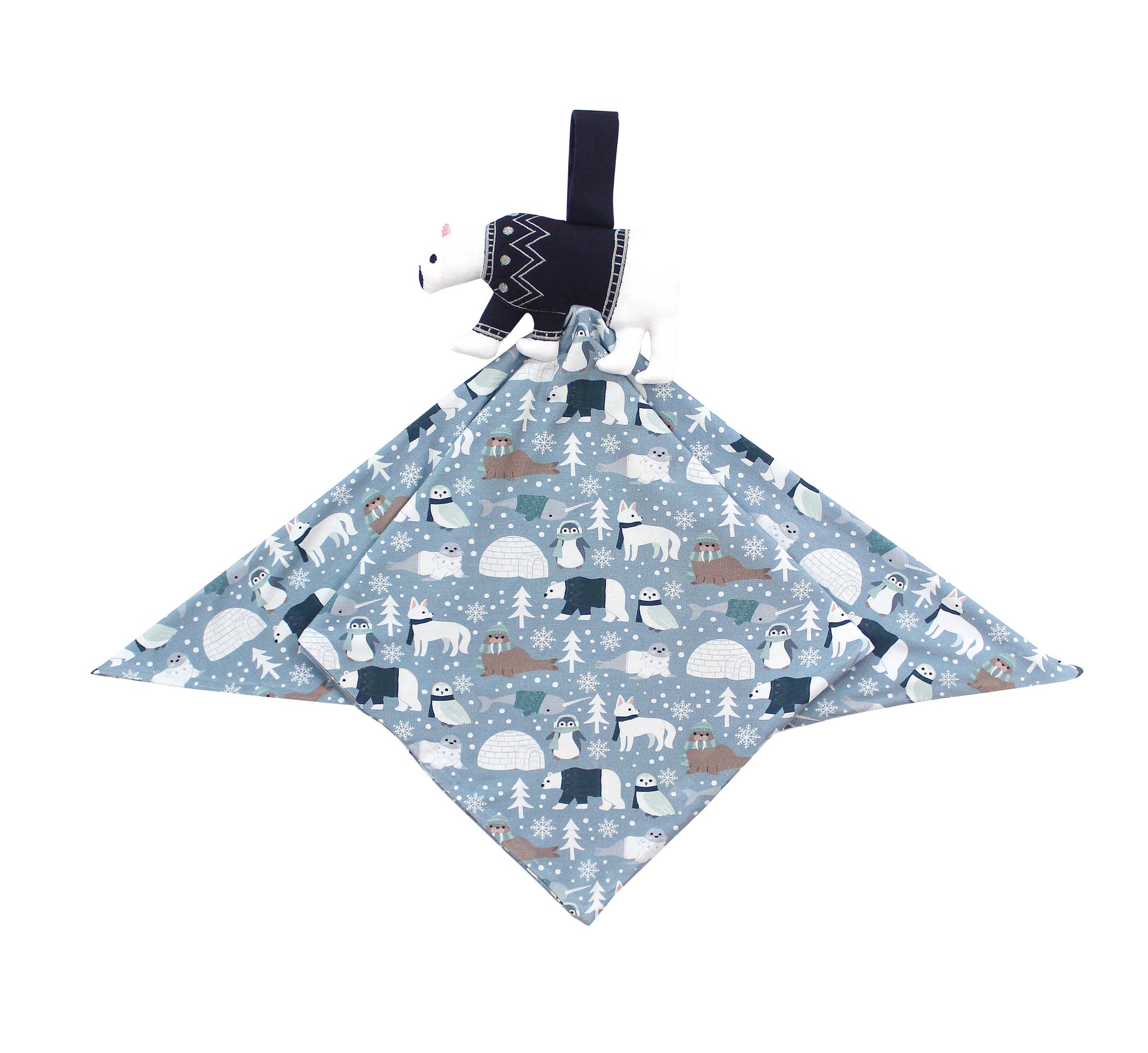 Featuring a buttery soft blanket made from our bamboo fabric and a 100% cotton stuffed plush – these are the perfect nursery or newborn gift for little ones! Color/Print: Polar Pals (Polar Animals) Fabrics: 100% cotton stuffed plush polar bear topper 95% viscose from bamboo, 5% spandex Size: 20” X 20” attached blanket made from our buttery soft bamboo Wash: Surface Washable Imported