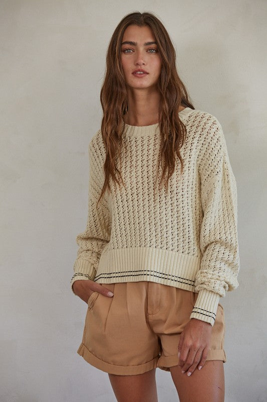 Knit Cable Sweater, Crew Neck ,Long Sleeve Top